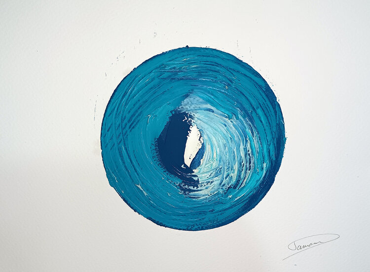 Je fabrique très souvent avec des liants aqueux ou oléorésineux (que je confectionne) et des pigments purs, toutes mes peintures au moment de peindre, cela afin de conserver la fraîcheur des couleurs et un maximum d'intensité.