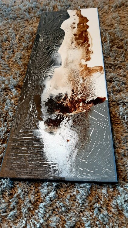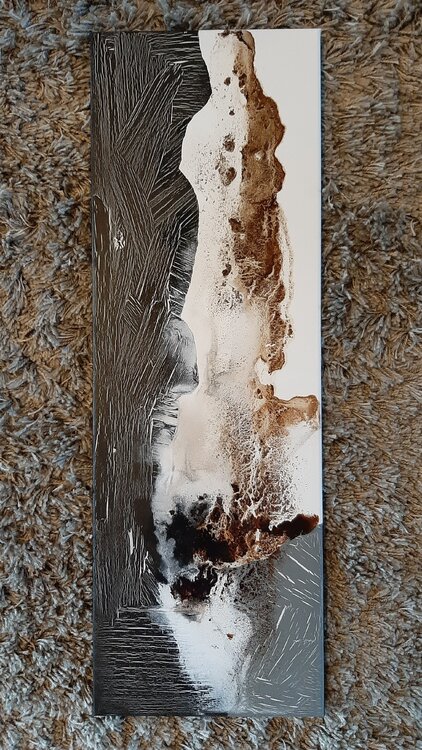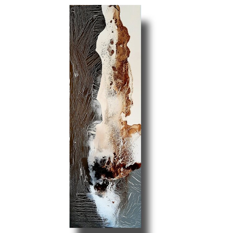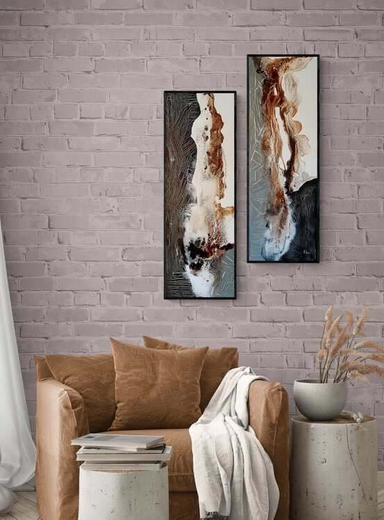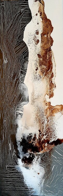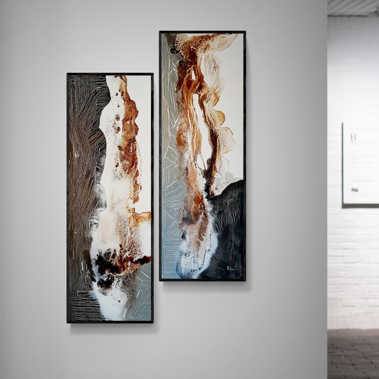 "Au fil de l'eau 2" est une œuvre de mélanges. Un mélange d'ambiances, un mélange de techniques, un mélange de ressentis, des mélanges qui interrogent le regard. Cette toile peut être également combinée avec l'autre œuvre de la même dimension (90 x 30), intitulée "Au fil de l'eau".