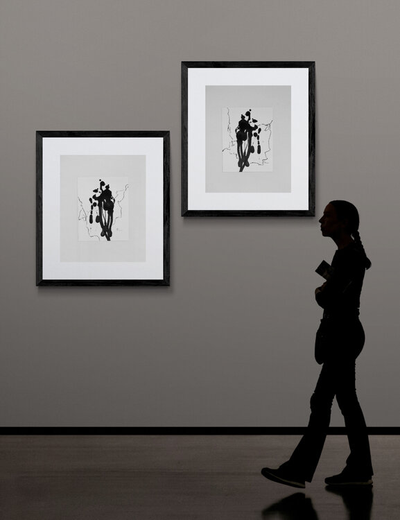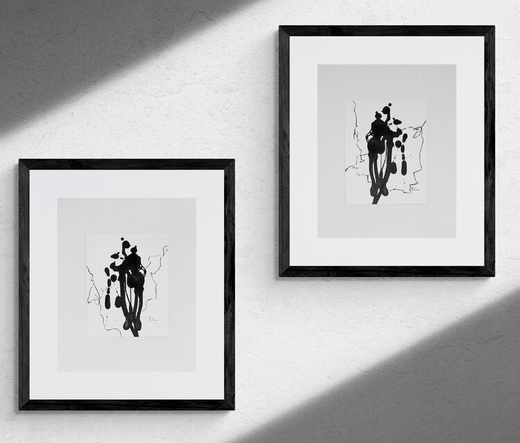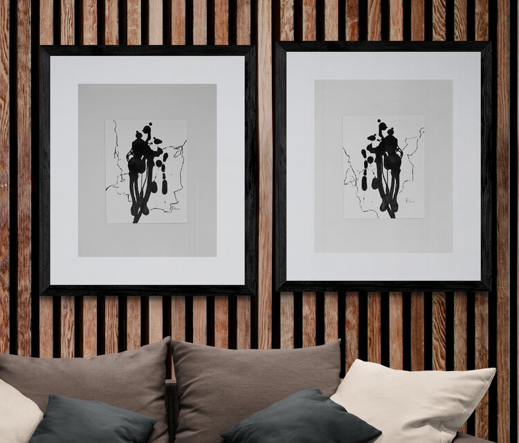 Une œuvre moderne et minimaliste. Un duo à agencer selon vos souhaits! Chaque œuvre mesure 40 x 50.