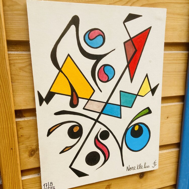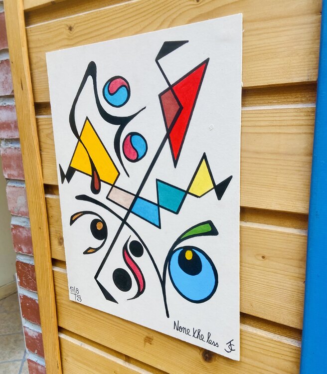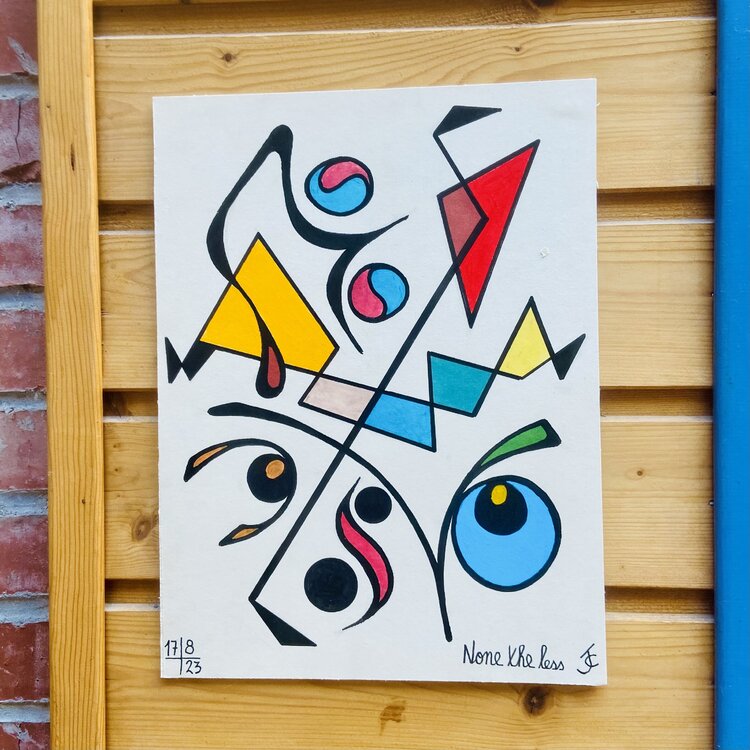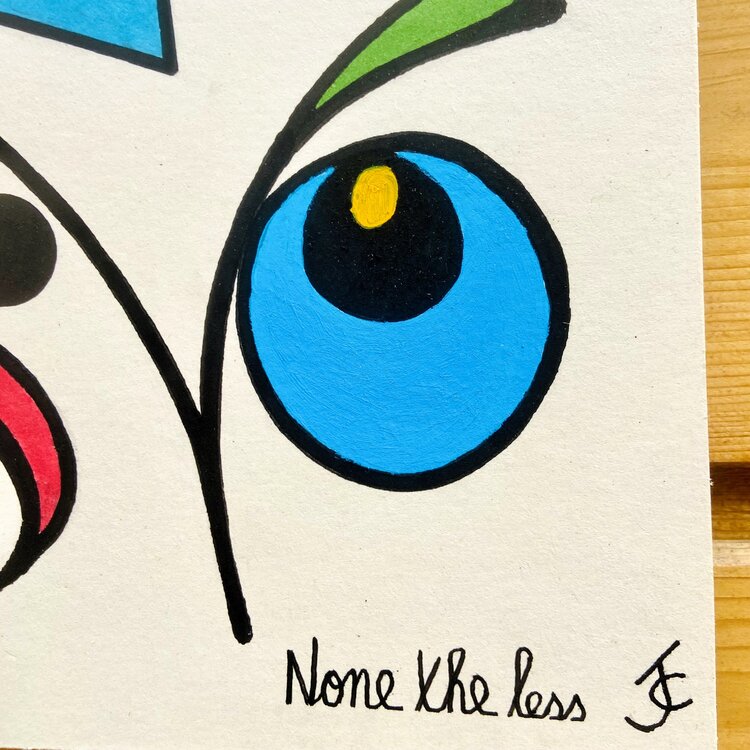 Dans cette œuvre aux traits fins et aux couleurs chatoyantes, baptisée " Néanmoins" nous invite à chercher un nez. L'artiste a pris un malin plaisir à rendre le nez difficilement visible. Et vous, l'avez vous vu ?