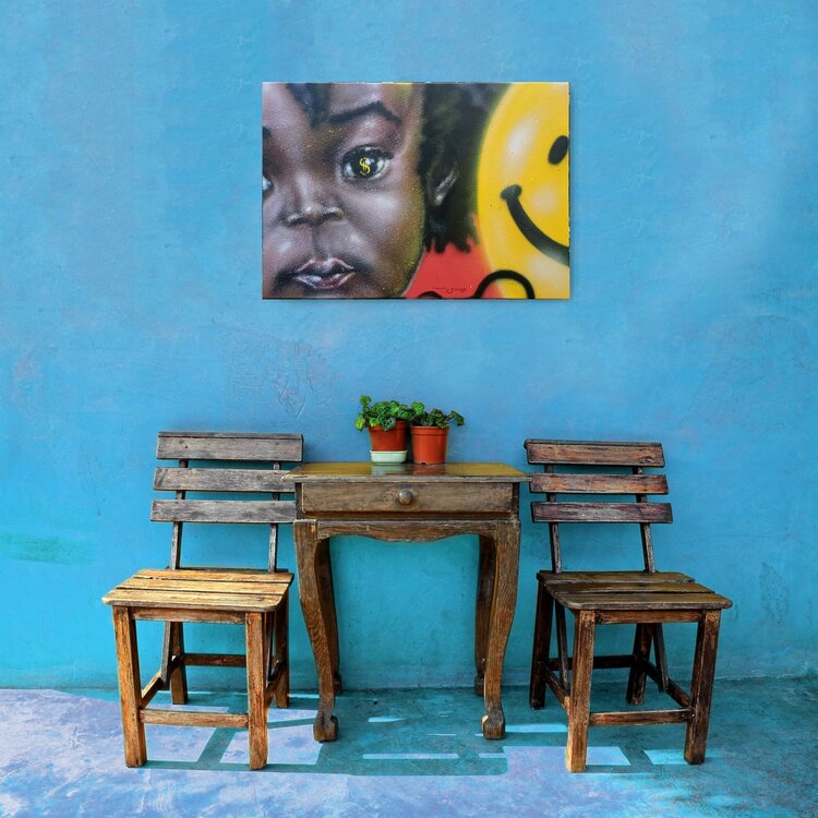 L'œuvre d'art s'est développée à partir de plusieurs études plus petites en préparation d'une œuvre d'art urbaine pour un mur à Mannheim, en Allemagne, en 2020. C'est un paradoxe entre quelque chose de doux et d'effrayant simultanément.