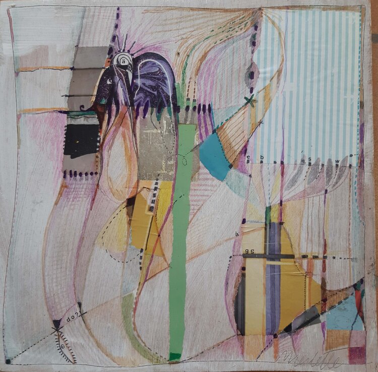Dans la dynamique "Composition Éclatante", la palette de tons mauve et vert crée une symphonie visuelle vibrante. Cette œuvre est une célébration abstraite où la musique et l'art fusionnent. La toile devient une jonglerie magique de lignes et de couleurs, chacune dansant au rythme d'une mélodie intérieure.