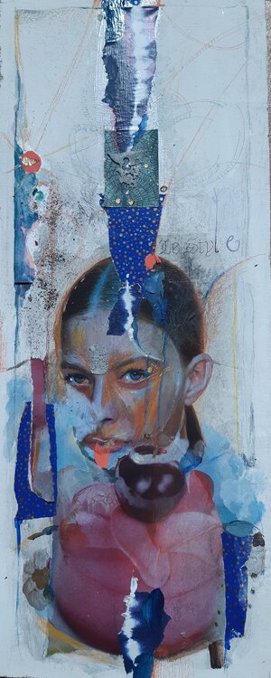 Sur bois, une composition sensible évoque la splendeur et les mystères au féminin. Techniques mixtes et collages créent un portrait captivant. Les textures naturelles du bois se mêlent à des fragments de papier et d'autres éléments pour donner vie à une toile aux nuances délicates. Chaque coup de pinceau et chaque élément collé révèlent les mystères enchanteurs de la féminité. Les contrastes de lumière et d'ombre, l'harmonie des formes, transcendent1