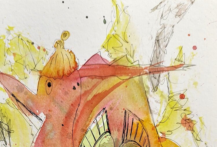 Les œuvres sont des aquarelles au feutre fin sur papier aquarelle 300g au format 32x24 cm