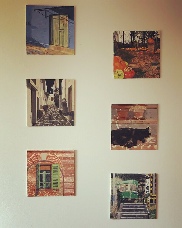 Carton toilé de 20x20 cm à marier avec un autre (fouillez la galerie pour trouver votre bonheur) ou avec plusieurs pour décorer un mur de manière originale.