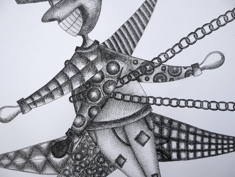 « Dans sa simplicité, la ligne est l'élément central de mes tableaux, elle crée des connexions et des frontières, le dédoublement crée des espaces. »