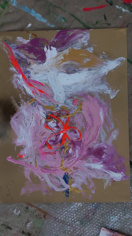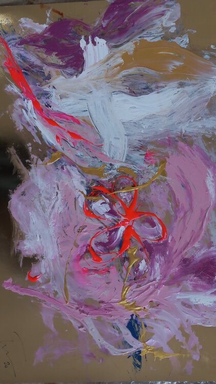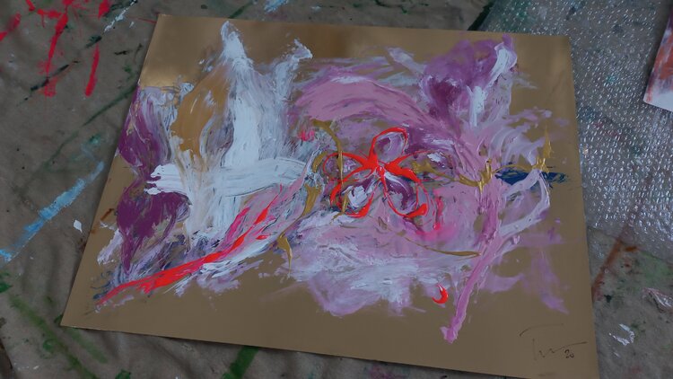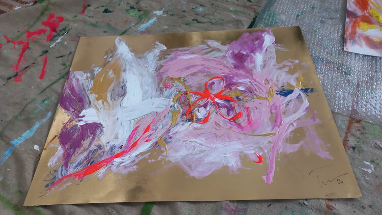 Lueur de toi. Fluide comme vous l'êtes... Les souvenirs profonds se transforment. Brillez et fleurissez. La douleur déversée en elle-même... explose en coulant dans la légèreté de l'Etre pur. Fleur de toi avec Amour ! Oeuvre originale avec certificat. Oeuvre réalisée sur carton doré. Soyez libre comme vous êtes....