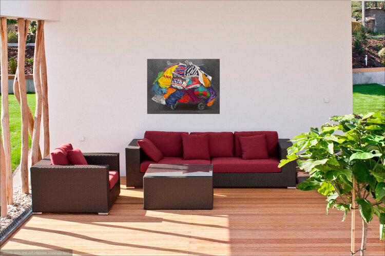 Ma photo montre un monde coloré. Tout le contraire des gens qui doivent vivre sur les étoiles. Leurs affaires emballées dans des sacs en plastique colorés, ils recherchent quotidiennement un endroit1