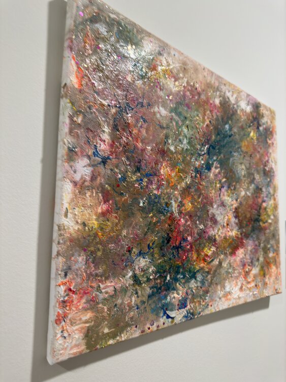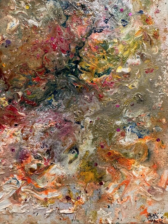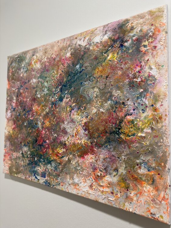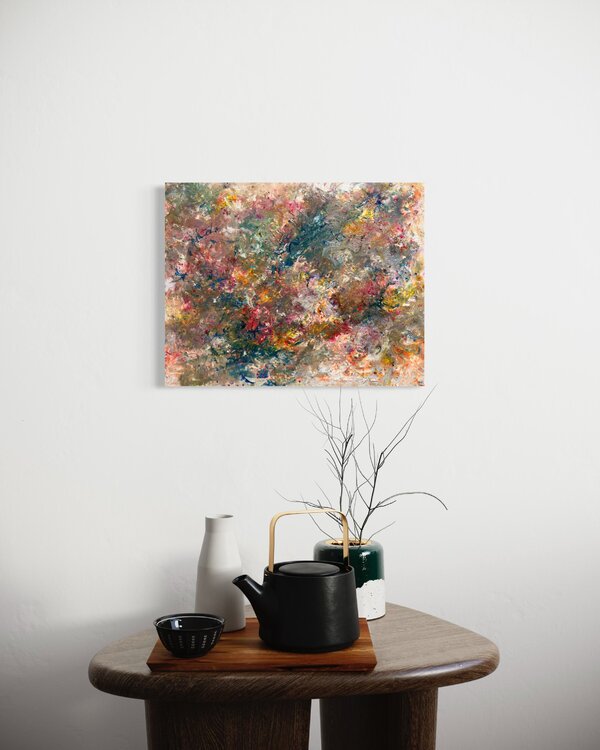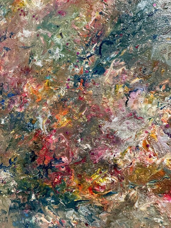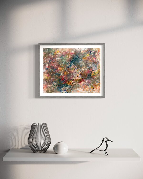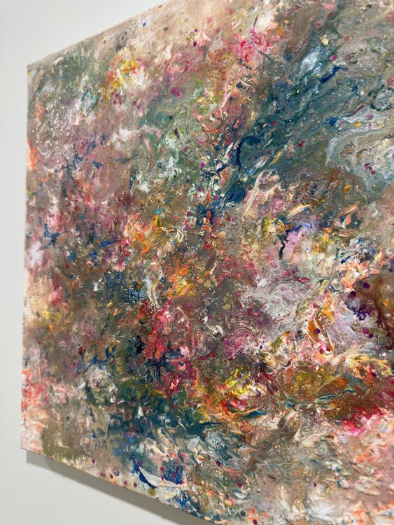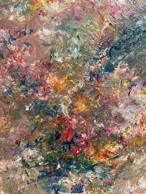 La beauté des couleurs de cette peinture se décline en une palette de mouvements poétiques colorés, entrelacs de connexions et de liaisons amoureuses.
