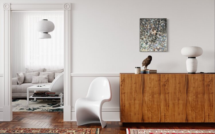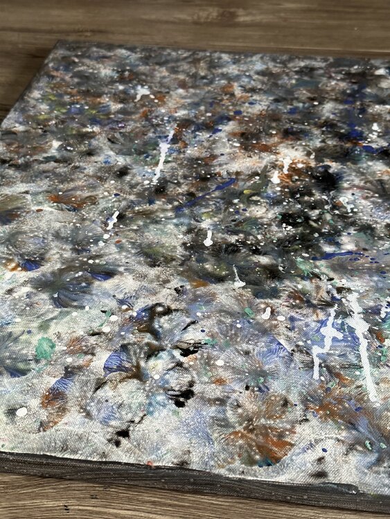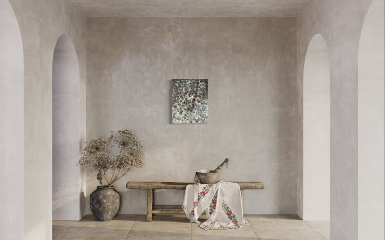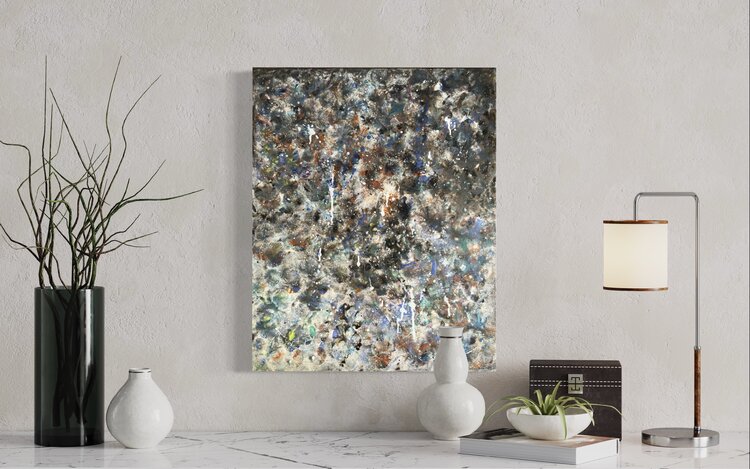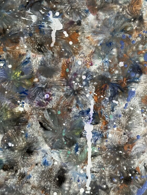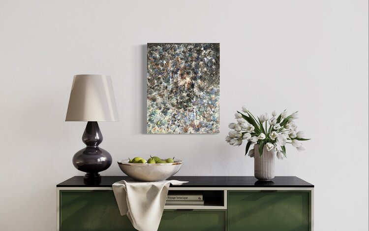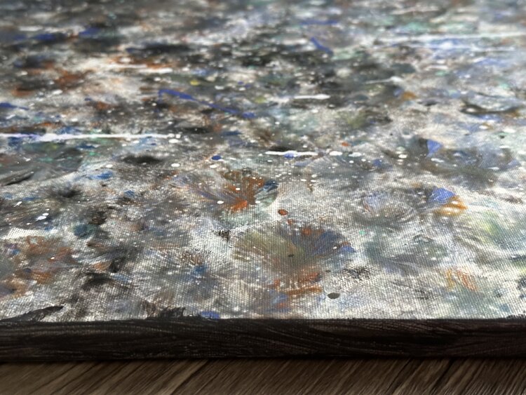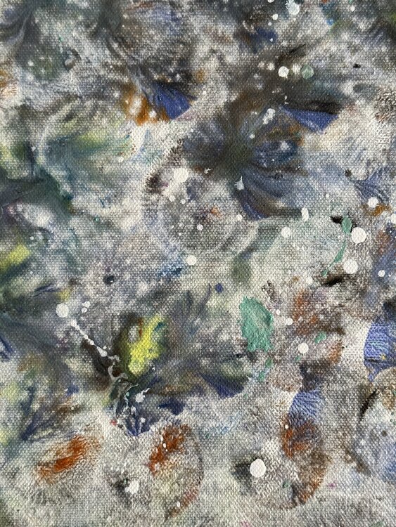 Des myriades de fleurs, dans les dégradés de bleus, gris, vert et noir.. sur fond de poésie, contrasté, qui captent le regard dans une longue contemplation et rêverie..
