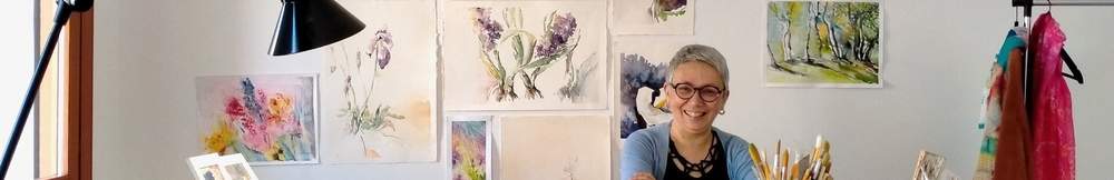 Dipingo ad acquerello su carta. Mi piace lavorare realizzando delle piccole serie di dipinti con cui raccontare i miei esercizi di osservazione del mondo e della mia quotidianità. Per cominciare a lavorare ad una nuova serie produco materiale visivo vario: fotografie, schizzi, bozze, palette cromatiche e prove di colore, tutti materiali indispensabili per sviluppare il mio progetto e far respirare le idee. E quando finalmente arriva il momento di dipingere a guidarmi sono la gestualità e il piacere del colore. Della tecnica ad acquerello amo l'immediatezza che mi permette di giocare con la casualità del medium-acqua, e la versatilità: oltre al pennello lavoro sulla carta con spazzole, puntueroli, filo, spago, pellicole, cartoncini, carte colorate e altro ancora. Esplorare le infinite possibilità di texture della superficie dipinta ad acquerello è un gioco che mi impegna quanto mi appassiona. Questo fino ad oggi, e domani?