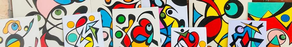 Trova una serie di opere astratte nel puro stile dell'artista. Gouache e acrilico su cartone riciclato.