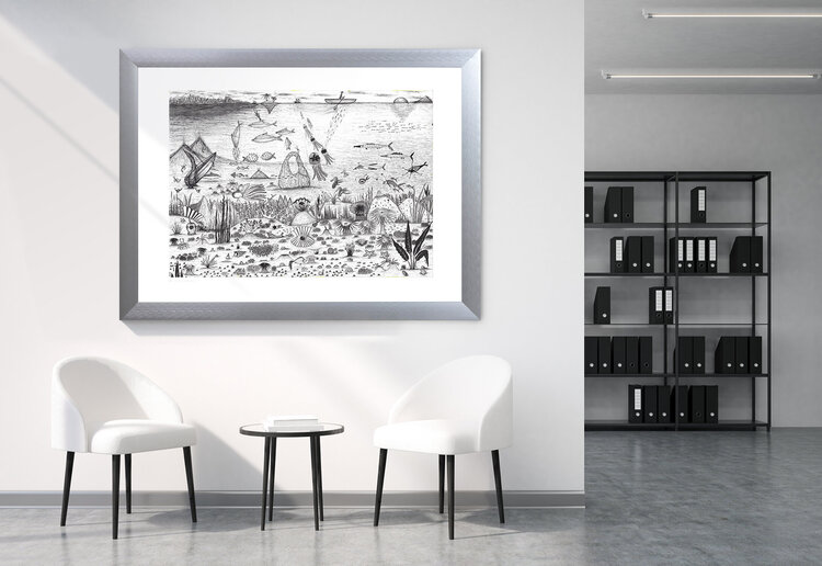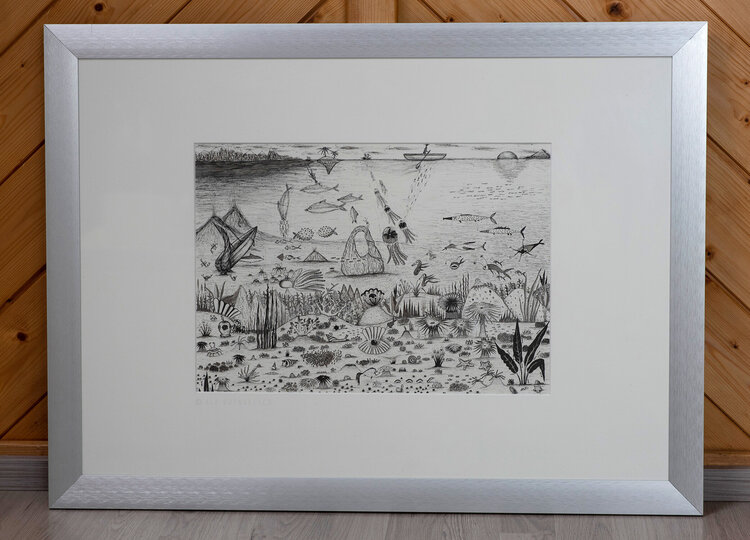 Mi è venuto spontaneo realizzare un disegno con il tema dell'oceano. Sono affascinato dal mondo sottomarino, dalle creature conosciute e da quelle ancora da scoprire. È un campo che non viene studiato nella sua interezza e in qualche modo suscita in me molta curiosità.