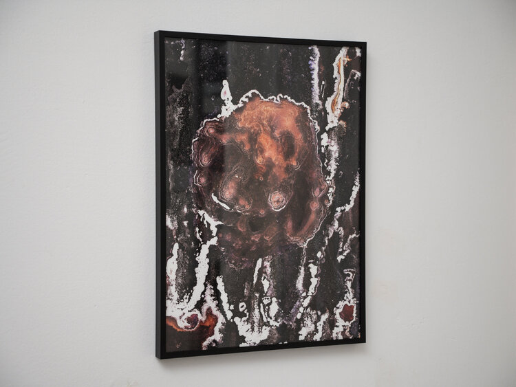 La serie tesse un'affascinante rete di forme e configurazioni astratte, tra i confini intangibili dell'astrazione e dei modelli microscopici. Uno spazio che sfugge a una chiara definizione, dove macrocosmo e microcosmo si confondono ed emerge una sfera quasi incomprensibile.