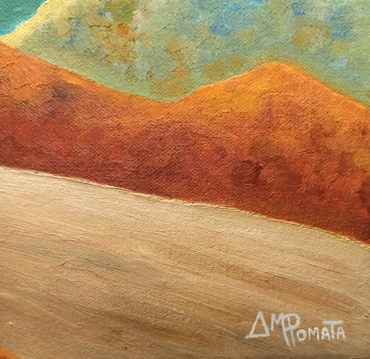 «Entra nell'affascinante mondo della pittura di AM Pomata. "Way Out Of The Doubt" è un paesaggio dell'anima in cui l'amore trascende l'incertezza e sboccia in un viaggio armonioso. Il dipinto ad olio cattura l'essenza di una coppia che attraversa il dubbio, emergendo trionfante su un sentiero lastricato di amore e serenità.