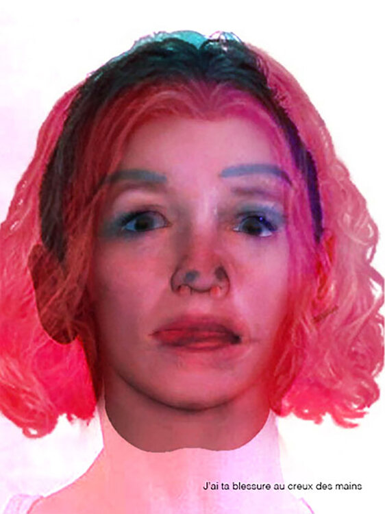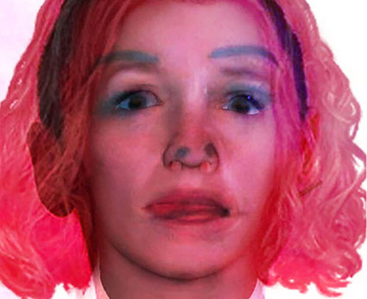 Questa è una delle matrici di Truisms, un mix tra il ritratto dell'artista, quello di una star di Hollywood, il ritratto composito di un criminale canadese e un uomo di un dipinto precedente (The Tiredness of Being Self 3) che ricrea un'atmosfera spaventata e nuova faccia spettrale rosa confetto, persa, errante. È proprio lì.1