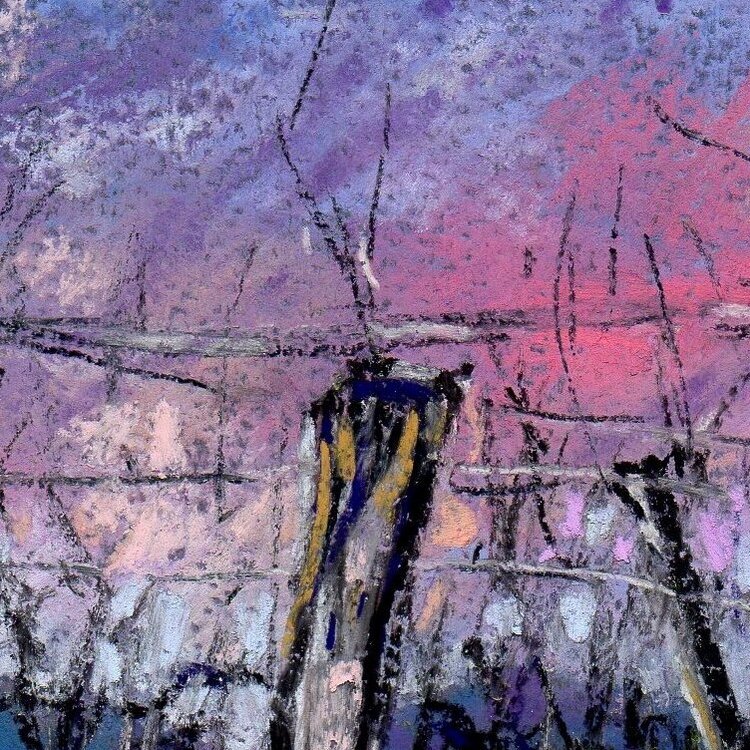 I soggetti che scelgo di ‘interpretare’ sono da foto o dal vivo. Dopo qualche bozzetto scelgo i colori e la superficie. Le superfici che utilizzo variano secondo la qualità dei pastelli e l’effetto che desidero raggiungere. Con un pastello secco disegno velocemente gli elementi principali. Dopodiché, applico il colore con tratti larghi riempiendo le aree previamente disegnate. Sfumo i colori direttamente con i polpastrelli. Infatti, non uso sfumini1