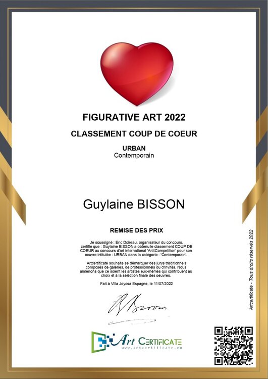 Questo dipinto ha vinto un premio "coup de coeur" al concorso internazionale "Art4Competition" l'11 luglio 2022, nella categoria "contemporaneo".