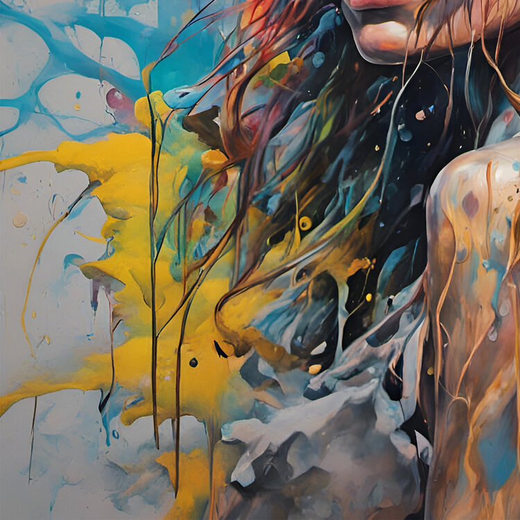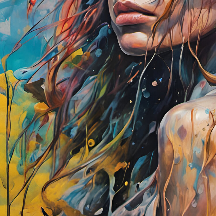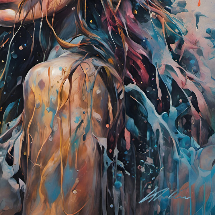 Un tuttofare, Khélène è a suo agio nel lavorare con i materiali come nell'uso delle nuove tecnologie e qui ti offre un lavoro originale creato utilizzando strumenti digitali e immagini generate dall'intelligenza artificiale: un lavoro armonioso e creativo che utilizza le specificità del linguaggio1