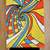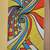 Questo originale dipinto astratto affascina con il suo vorticoso vortice di colori e motivi geometrici dinamici. Realizzato con pennarelli acrilici su cartoncino, misura 32 cm di altezza e 22 cm di larghezza. L'uso audace dei colori primari attira l'occhio in una composizione a spirale che evoca un senso di movimento ed energia, incorniciata all'interno di una serie strutturata, ma fluida, di strisce e curve.