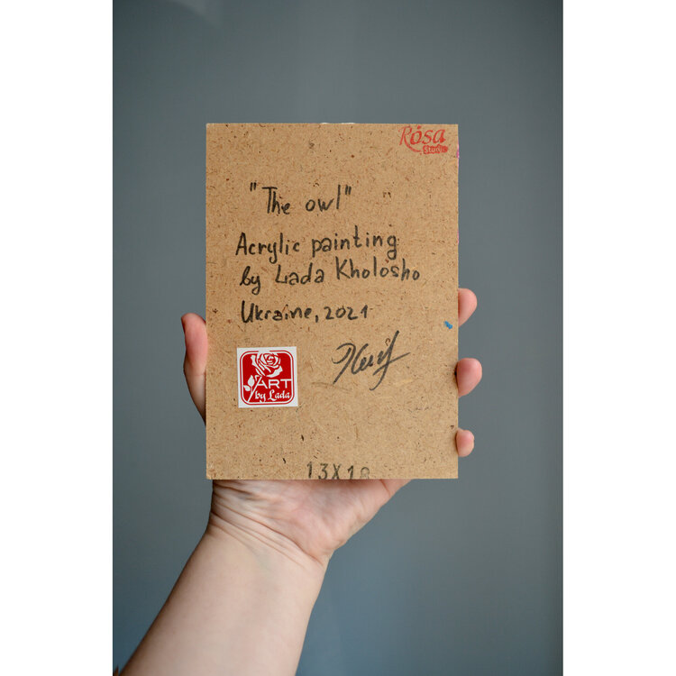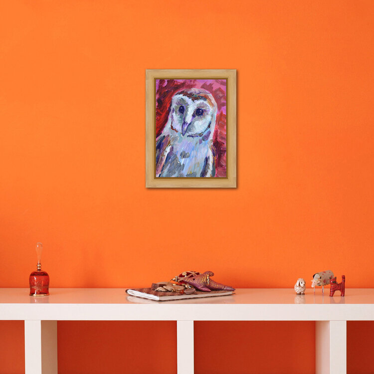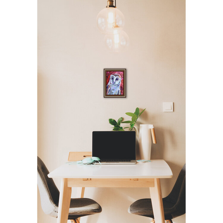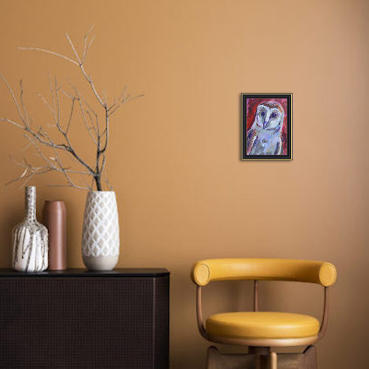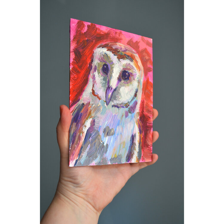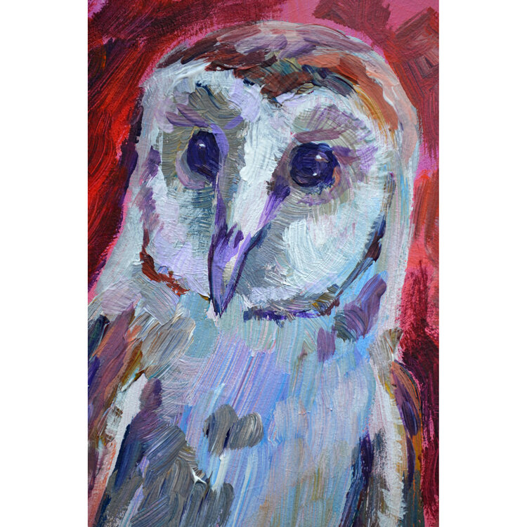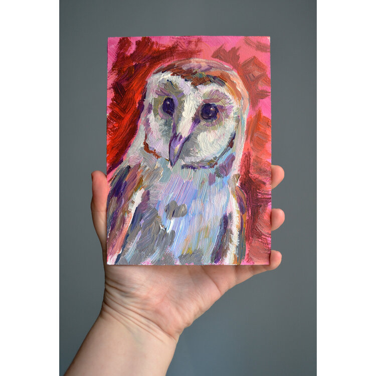 Ritratto di barbagianni. Opera unica nel suo genere, piccolo dipinto originale, da collezione, firmato dall'artista.