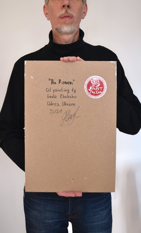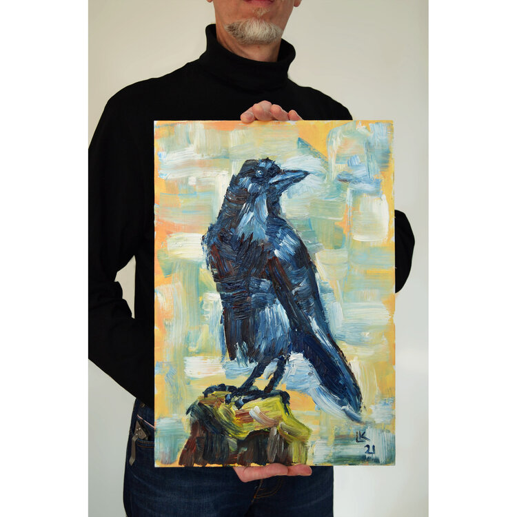 Corvo nero, corvo, uccello astratto, dipinto originale unico nel suo genere.