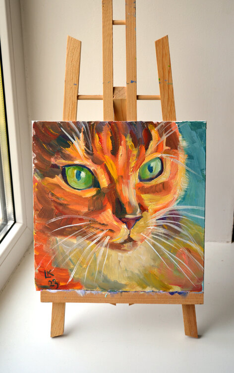 Questo dipinto a olio originale è l'aggiunta perfetta al tuo arredamento. Con le sue dimensioni compatte (10x10 pollici/25x25 cm), questo dipinto a olio è la soluzione ideale per coloro che cercano un'arte murale economica senza compromettere la qualità. Questa opera d'arte è stata dipinta a mano con colori ad olio di qualità dell'artista su un pannello di tela dall'artista Lada Kholosho. Colori vibranti e tratti espressivi fittamente strutturati,1