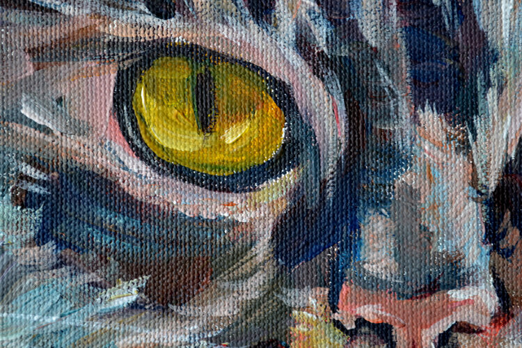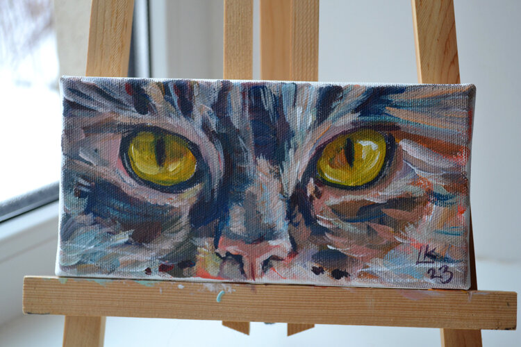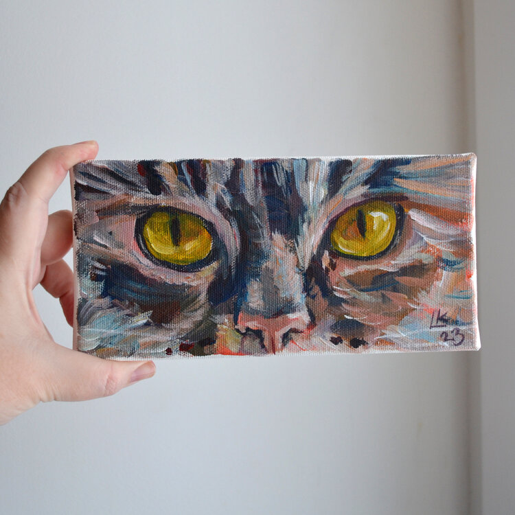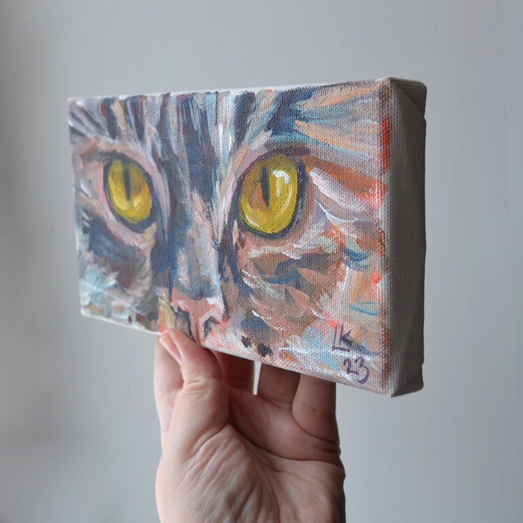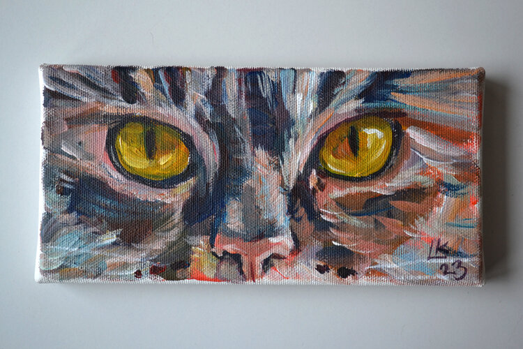 "Occhi di gatto" - piccolo dipinto acrilico originale su tela tesa. Dimensioni: 9,5x19,5 cm/3,5x7,5"