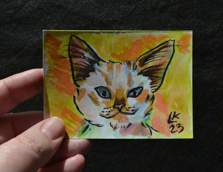 Questo è un piccolo dipinto ad acquerello (6x9 cm) che puoi incorniciare e appendere separatamente o in compagnia con altre miniature. Questa miniatura fa parte della serie di miniature da collezione "Varietà del gatto" per vedere altri dipinti di questa e di altre collezioni, per favore, visita il mio negozio.