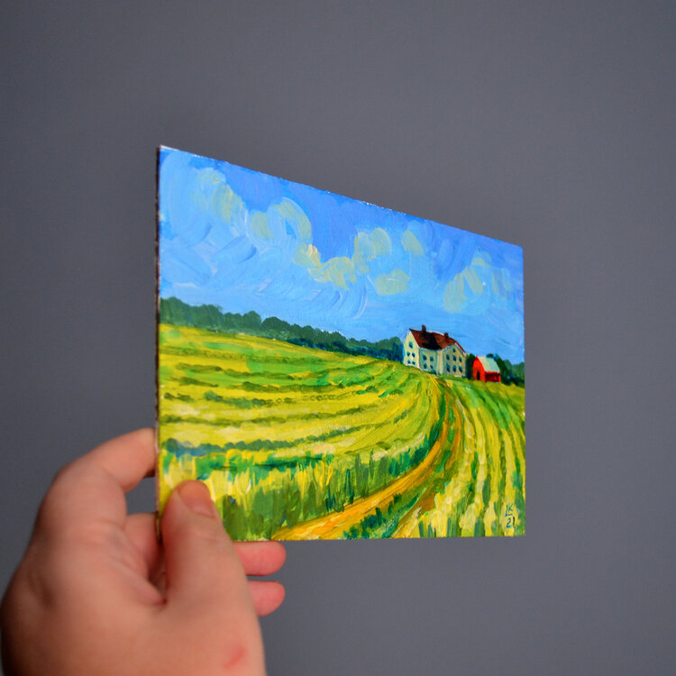 Questa piccola opera d'arte in acrilico originale è l'aggiunta perfetta al tuo arredamento. Con le sue dimensioni compatte (5x7 pollici/13x18 cm), questo piccolo dipinto è la soluzione ideale per coloro che cercano opere d'arte da parete a prezzi accessibili senza compromettere la qualità. Opere d'arte dipinte a mano con colori acrilici di qualità dell'artista su pannello rigido in legno dall'artista Lada Kholosho. Colori vivaci e tratti espressivi1