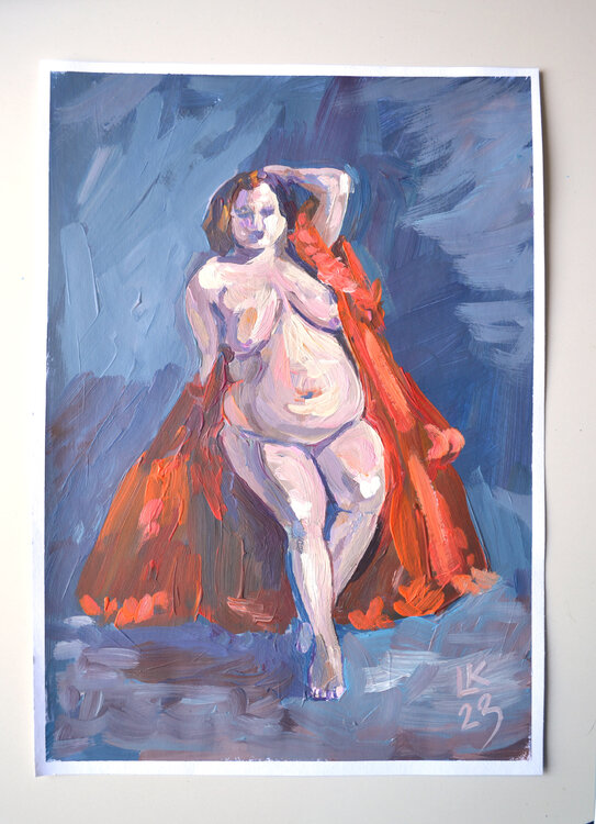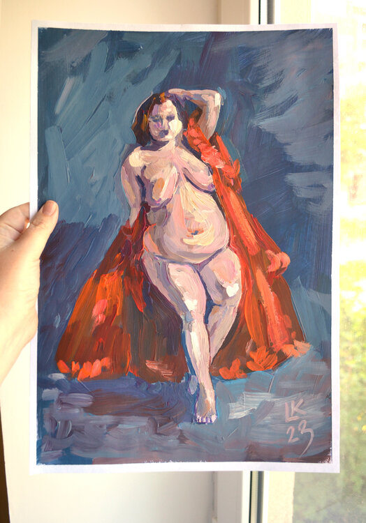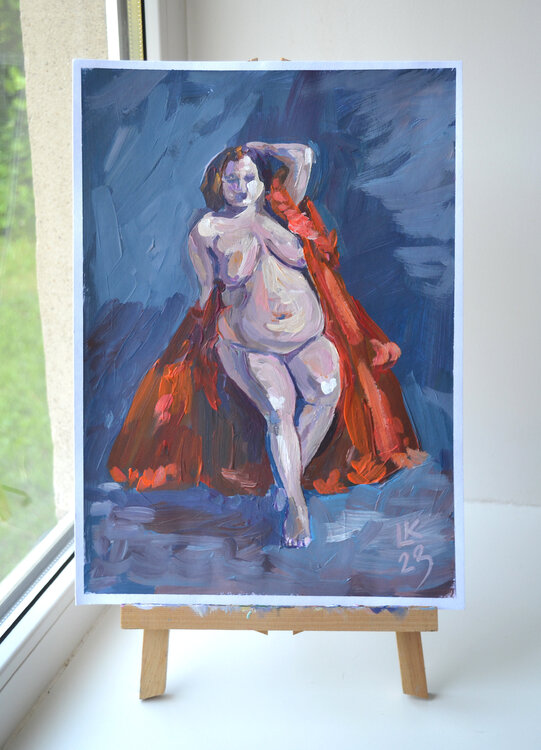 Questo dipinto originale è l'aggiunta perfetta all'arredamento della tua casa. Questo dipinto acrilico (11,7 x 16,5 pollici/30x42 cm) è la soluzione ideale per coloro che cercano un'arte da parete economica senza compromettere la qualità. Questa opera d'arte è stata dipinta a mano con colori acrilici di qualità dell'artista su carta dall'artista Lada Kholosho. Colori vibranti e tratti espressivi fittamente strutturati, di questo dipinto acrilico1