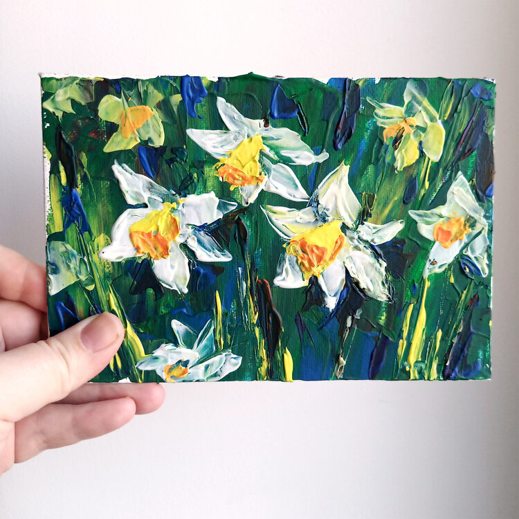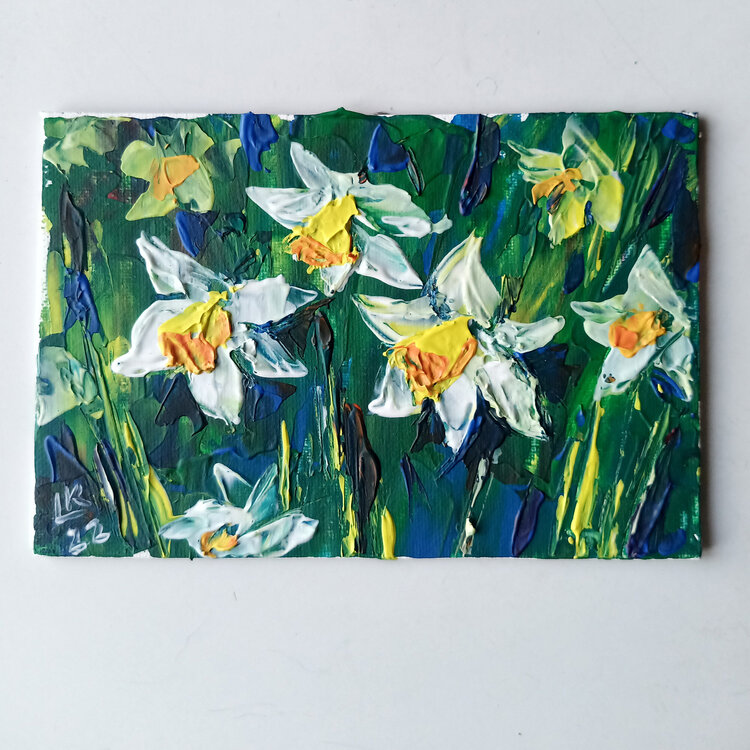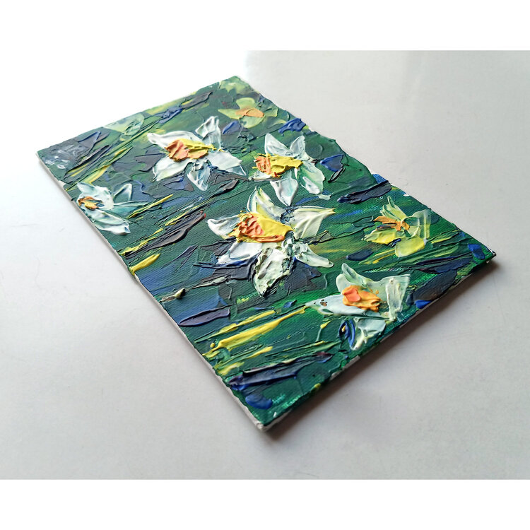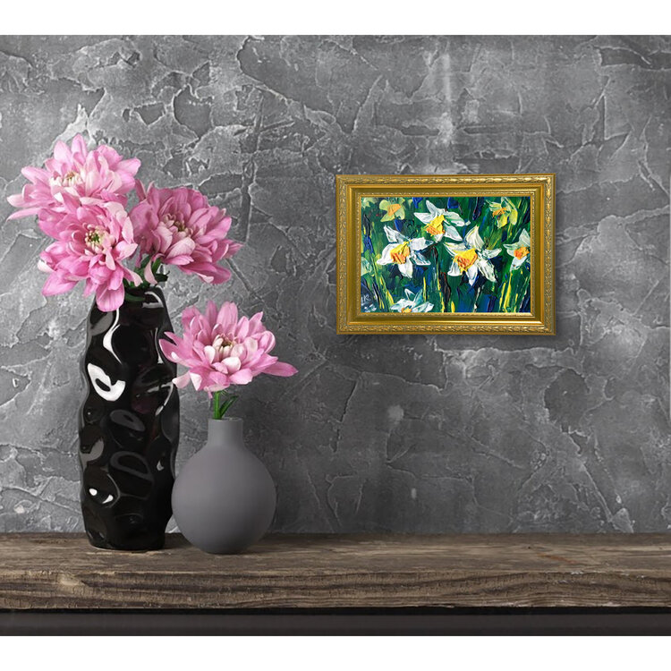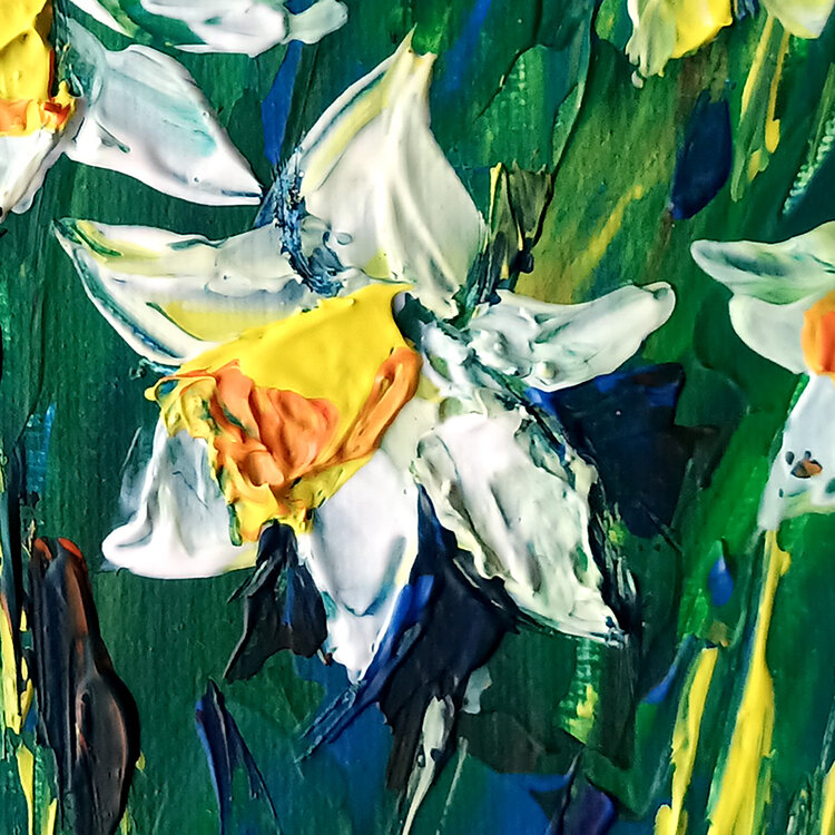 Narcisi fiori primaverili, arte murale floreale, dipinto originale unico nel suo genere.