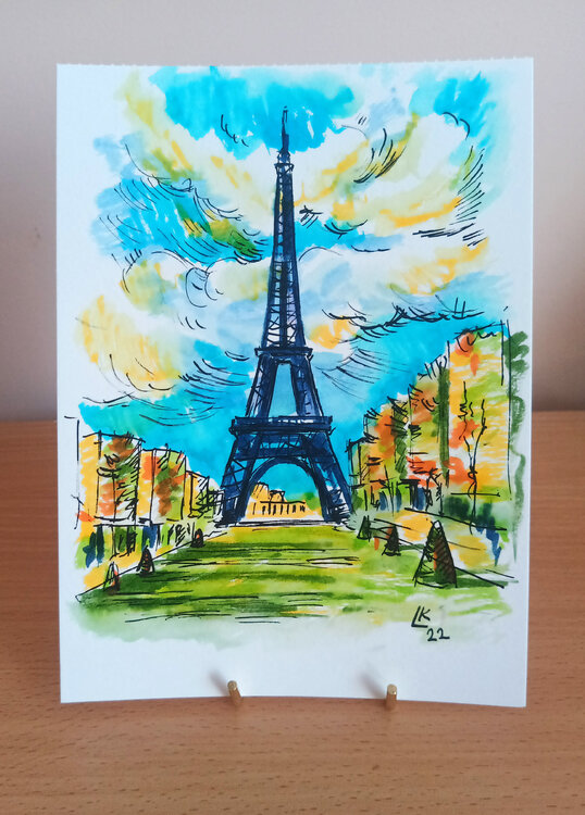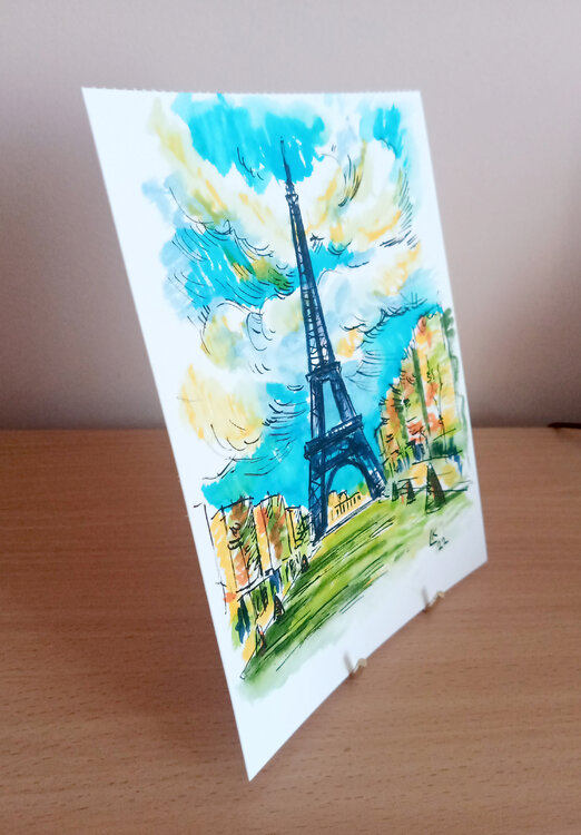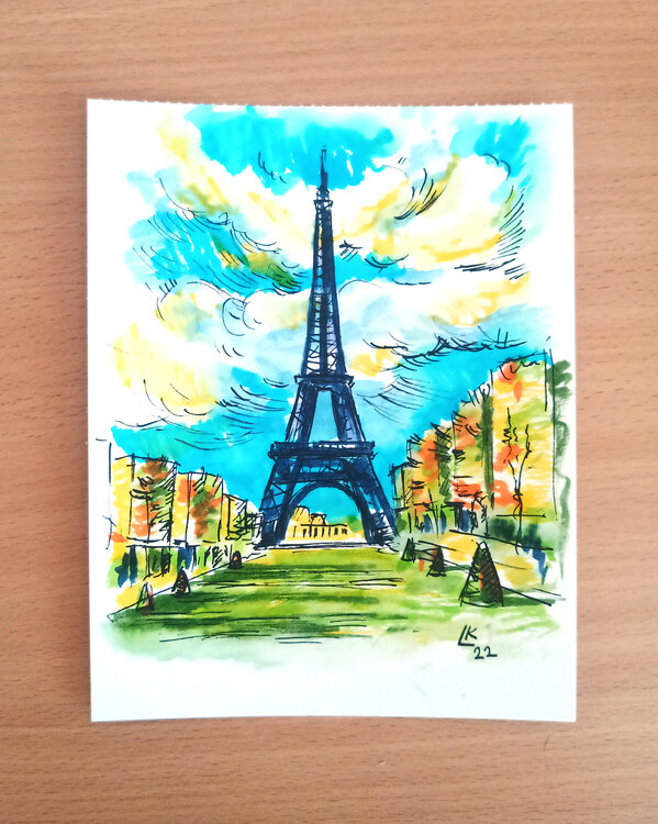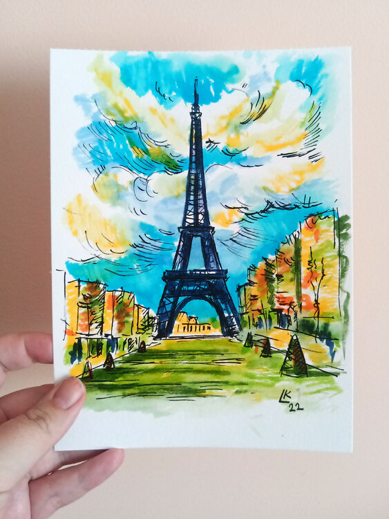 Torre Eiffel, Parigi, Francia, romanticismo, viaggi, attrazioni, vista sulla strada, paesaggio urbano, europiean, città, paese, dipinto originale unico nel suo genere.