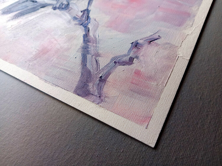 Questa è una grafica originale al 100%, non è una stampa o una copia! Dipinto a olio di piccole dimensioni 9,4"x12,6"/24x32 cm su carta con trama a tela. Un dipinto dai colori brillanti, ideale per piccoli spazi. Senza cornice è l'ideale da appoggiare su uno scaffale o puoi inserirlo in una cornice per foto decorata per un impatto ancora maggiore. Il dipinto può essere facilmente tagliato per adattarsi al telaio standard. L'arte è in vendita senza1