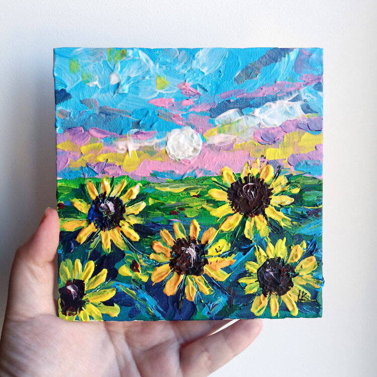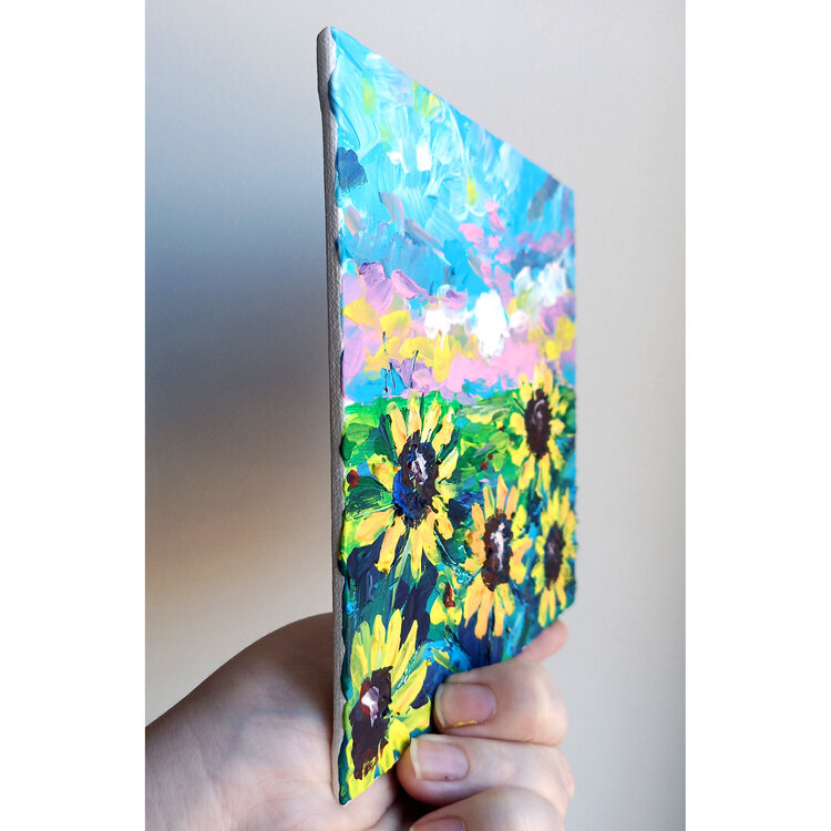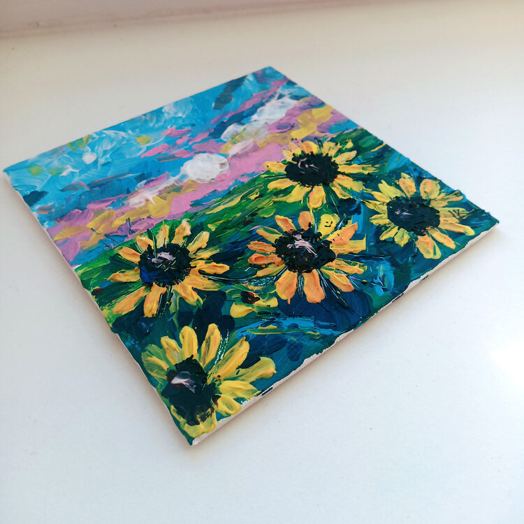 Fiori di girasole, arte murale floreale, dipinto originale unico nel suo genere.