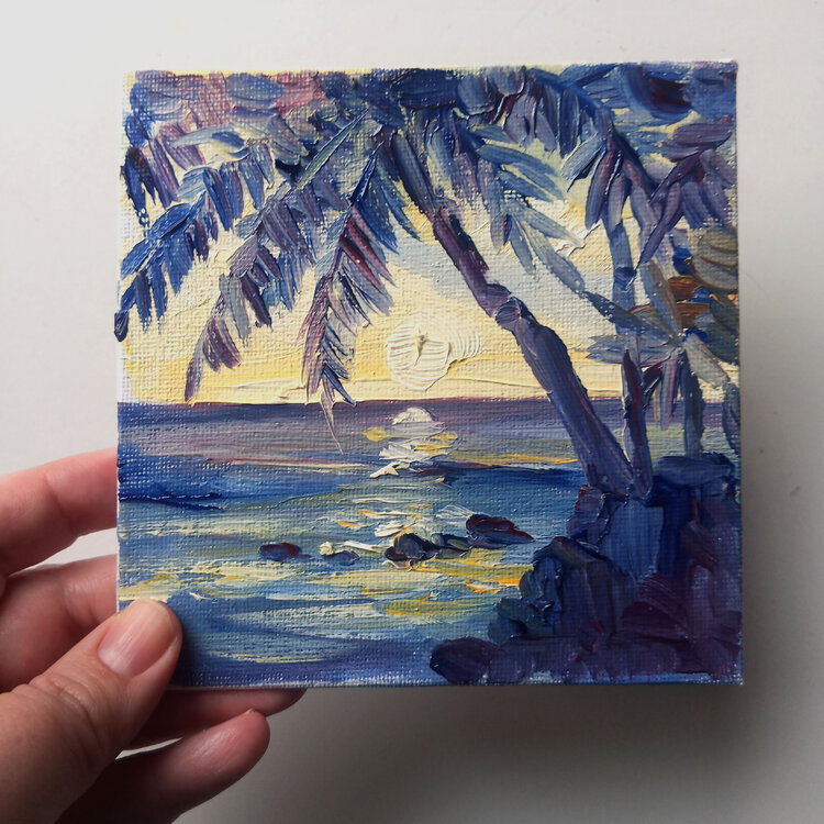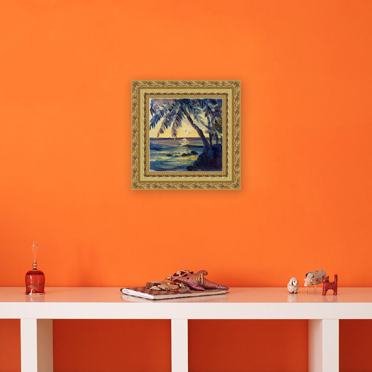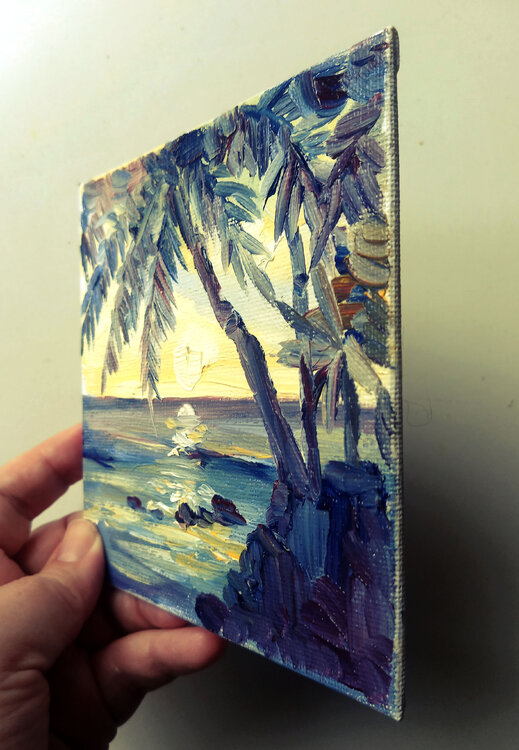 Costiere, paesaggio marino, cielo al tramonto, mare, paesaggio marino oceanico, dipinto originale unico nel suo genere.