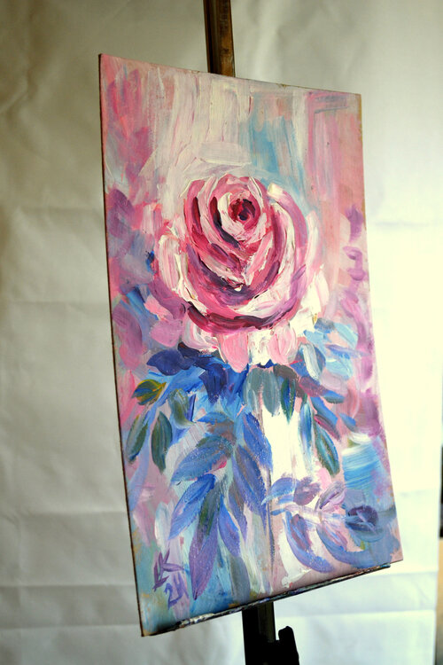 Il prodotto è un dipinto fatto a mano unico nel suo genere chiamato "The Serenity Rose", creato dall'artista Lada Kholosho. È un acrilico su cartone di medie dimensioni con un tema floreale con rose, piante, fiori e giardini. È realizzato in uno stile artistico moderno con accenni di espressionismo astratto ed è firmato dall'artista. Viene fornito senza cornice ed è perfetto per chi ama la natura e le opere d'arte floreali.