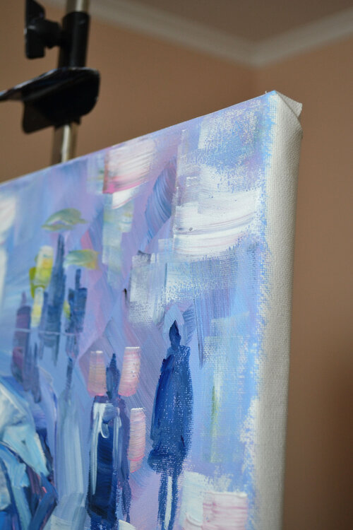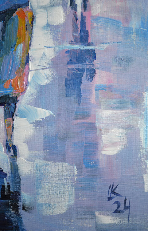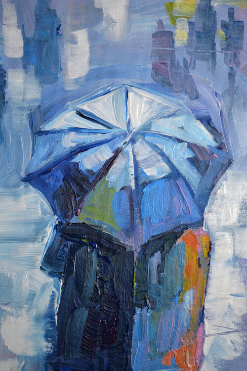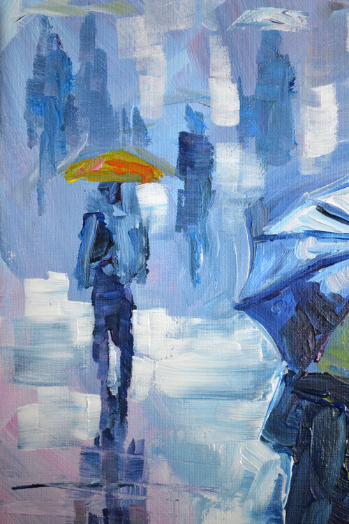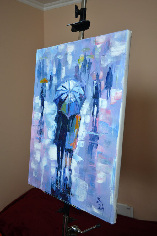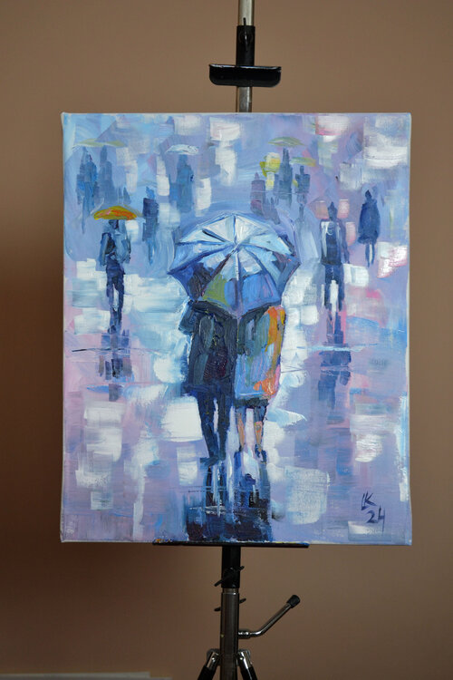 Questo dipinto unico nel suo genere di Lada Kholosho raffigura un paesaggio urbano urbano durante una giornata piovosa, con figure e paesaggi di una città astratta. Il dipinto è realizzato su una tela da 20 x 16 pollici utilizzando tecniche di pittura acrilica, risultando in uno stile postmodernista e artistico contemporaneo che fonde espressionismo, arte figurativa, impressionismo, post-impressionismo e modernismo. Il pezzo è firmato e realizzato1