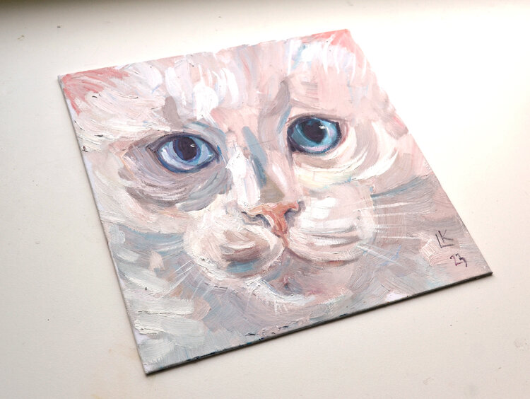 Questo dipinto a olio originale è l'aggiunta perfetta al tuo arredamento. Con le sue dimensioni compatte (10x10 pollici/25x25 cm), questo dipinto a olio è la soluzione ideale per coloro che cercano un'arte murale economica senza compromettere la qualità. Questa opera d'arte è stata dipinta a mano con colori ad olio di qualità dell'artista su un pannello di tela dall'artista Lada Kholosho. Colori vibranti e tratti espressivi fittamente strutturati,1