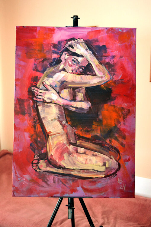 Questo dipinto unico è un vero capolavoro creato dal talentuoso artista Lada Kholosho. L'opera presenta una giovane donna su uno sfondo rosso sorprendente, resa in stile arte contemporanea. Misurando 28 pollici di altezza e 20 pollici di larghezza, questo dipinto unico nel suo genere (OOAK) è realizzato su tela e non è incorniciato. Il dipinto è una rappresentazione accattivante della forma femminile in un approccio modernista, mostrando un mix di1