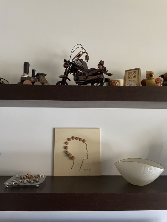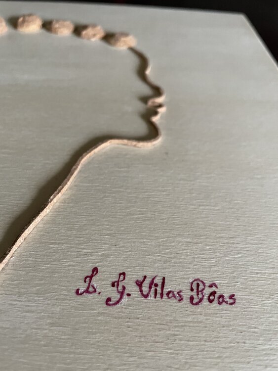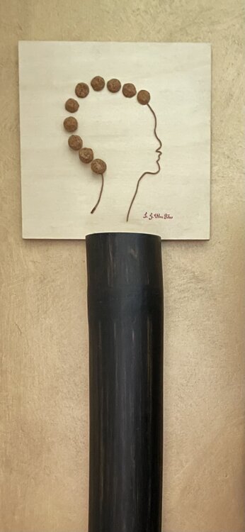 L’opera fa parte di una serie dedicata alle donne ed i suoi capelli. In “Cabelo 1” l’artista ha raffigurato il profilo di una donna con capelli afro, realizzato con tappi di sughero riciclati da bottiglie di vino e spumanti.
