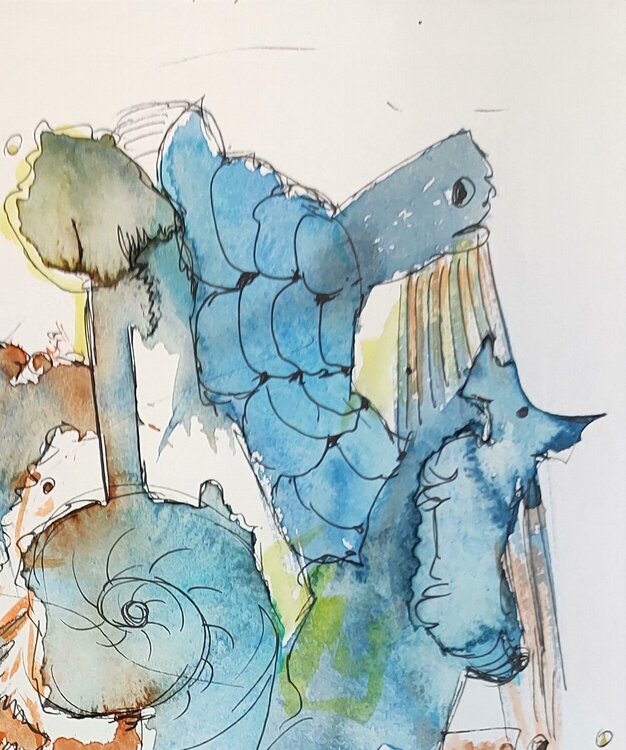 Le opere sono acquerelli con fineliner su carta da acquerello da 300 g nel formato 32x24 cm