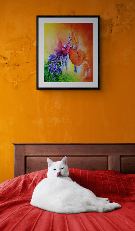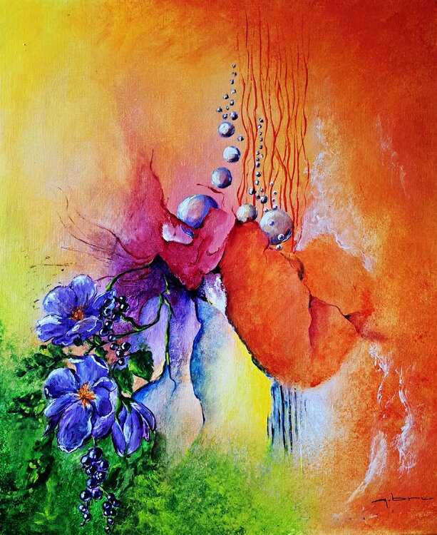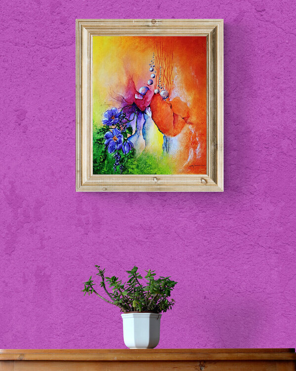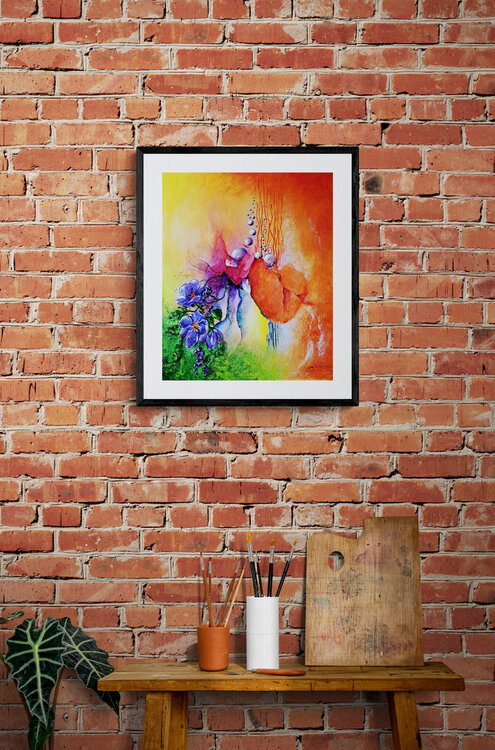Le bollicine e i filamenti evocano euforia e un battito cardiaco elevato, mentre i fiori suggeriscono la bellezza e il profumo inebriante di quel momento speciale.