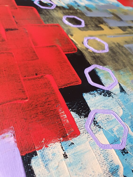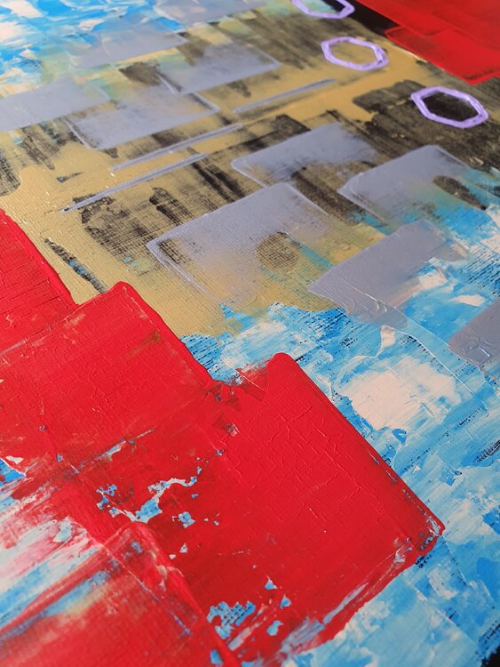 Uno stile differente per un soggetto ricorrente. Il soggetto è una Città rappresentata verticalmente. La tela si sviluppa proprio in verticale e la Città è come se si evolvesse: i palazzi dal sovrapporsi si diradano e le nuvole lasciano lo spazio a colori vivaci come l'oro e l'argento a simboleggiare l'evoluzione cui tendiamo.