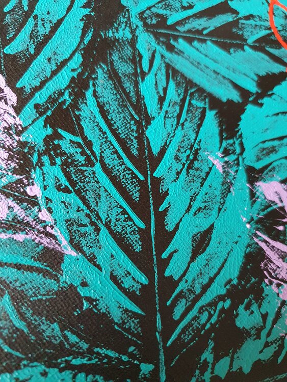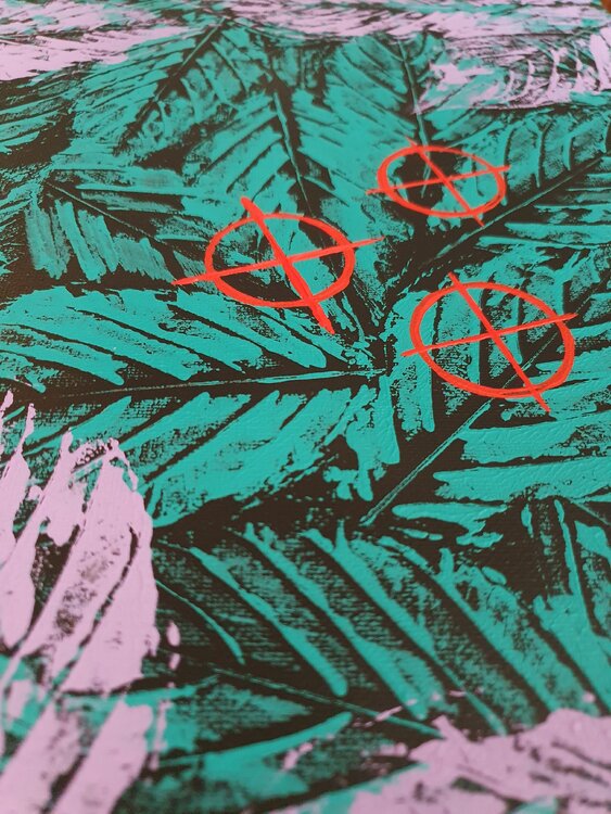 La tela, realizzata con l'utilizzo di foglie vere come stampo, vuole essere un omaggio alla natura e alle sue forme con una piccola critica: i bersagli. Infatti la natura di oggi è diventata il protagonista e, al tempo stesso, il bersaglio di critiche ed elogi: molto spesso è ingombrante, molto spesso è eccessiva, altre volte: "un po' di verde non fa male". Forse sarebbe meglio ammirarla1