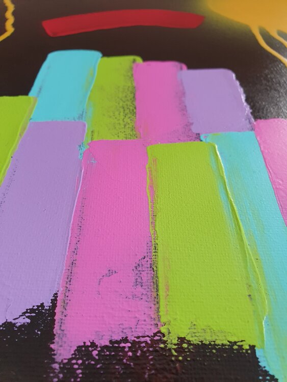 La tela, nonostante il soggetto sia chiaro e quasi banale, vuole fa sorgere una duplice domanda nell'osservatore: Una città colorata e senza prospettiva può essere considerata una vera città? Il Paesaggio oggi esiste ancora oppure è sostituito da palazzi colorati e muri dipinti a bomboletta?