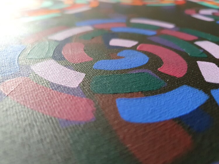 La tela rappresenta i sentieri della nostra vita. Tali sentieri sono rappresentati come dei punti di domanda a simboleggiare l'incognita e si sovrappongono gli uni sugli altri dato che alcuni sono facilmente visibili e percorribili mentre altri no. Il cielo è un tramonto malinconico con sprazzi di cielo sereno a rappresentare la tranquillità cui tutti aspiriamo.
