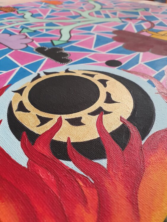 La conoscenza assoluta è come una sfera nel dolce abbraccio di un'albero mentre il Sole e la Luna, ovvero l'alternarsi della nostra quotidianità, è minacciata dalle fiamme.