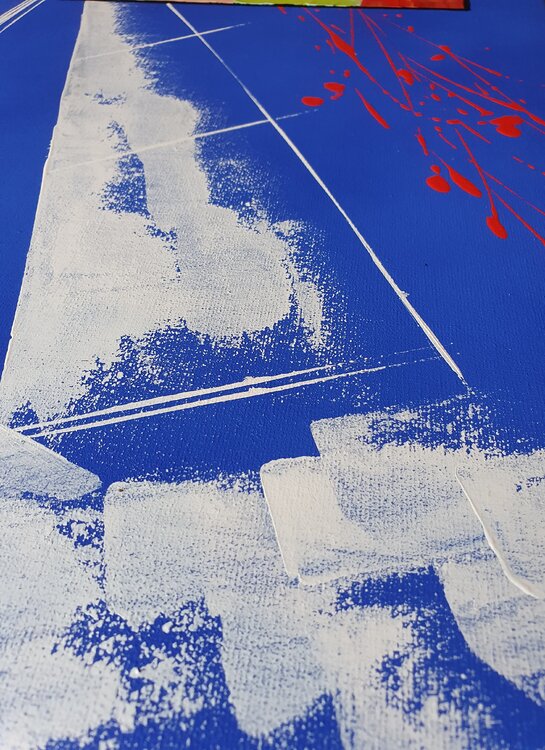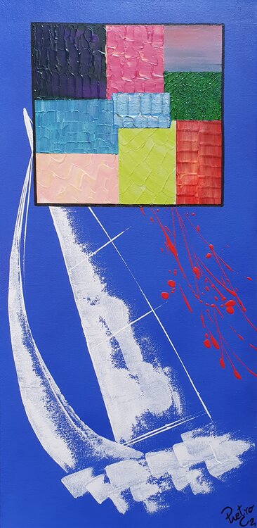 La tela è un omaggio alla Tramontana: vento freddo, proveniente da nord e, molto spesso, teso. Questo soffio di Eolo ad alcuni non piace per l'abbassamento delle temperature che porta ma, in realtà, libera il cielo dalle nubi permettendoci di vedere quel cielo azzurro dei metà pomeriggio o rosso del tramonto che ci tranquillizza ed ispira.