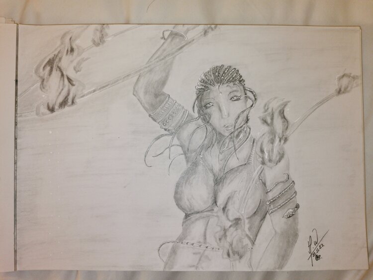 Elementi del fuoco: le fiamme attorno alle braccia simboleggiano la trasformazione o il potere insito nella danza rappresentata.